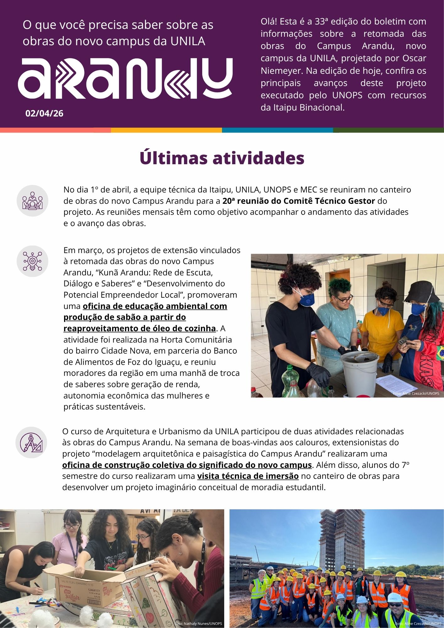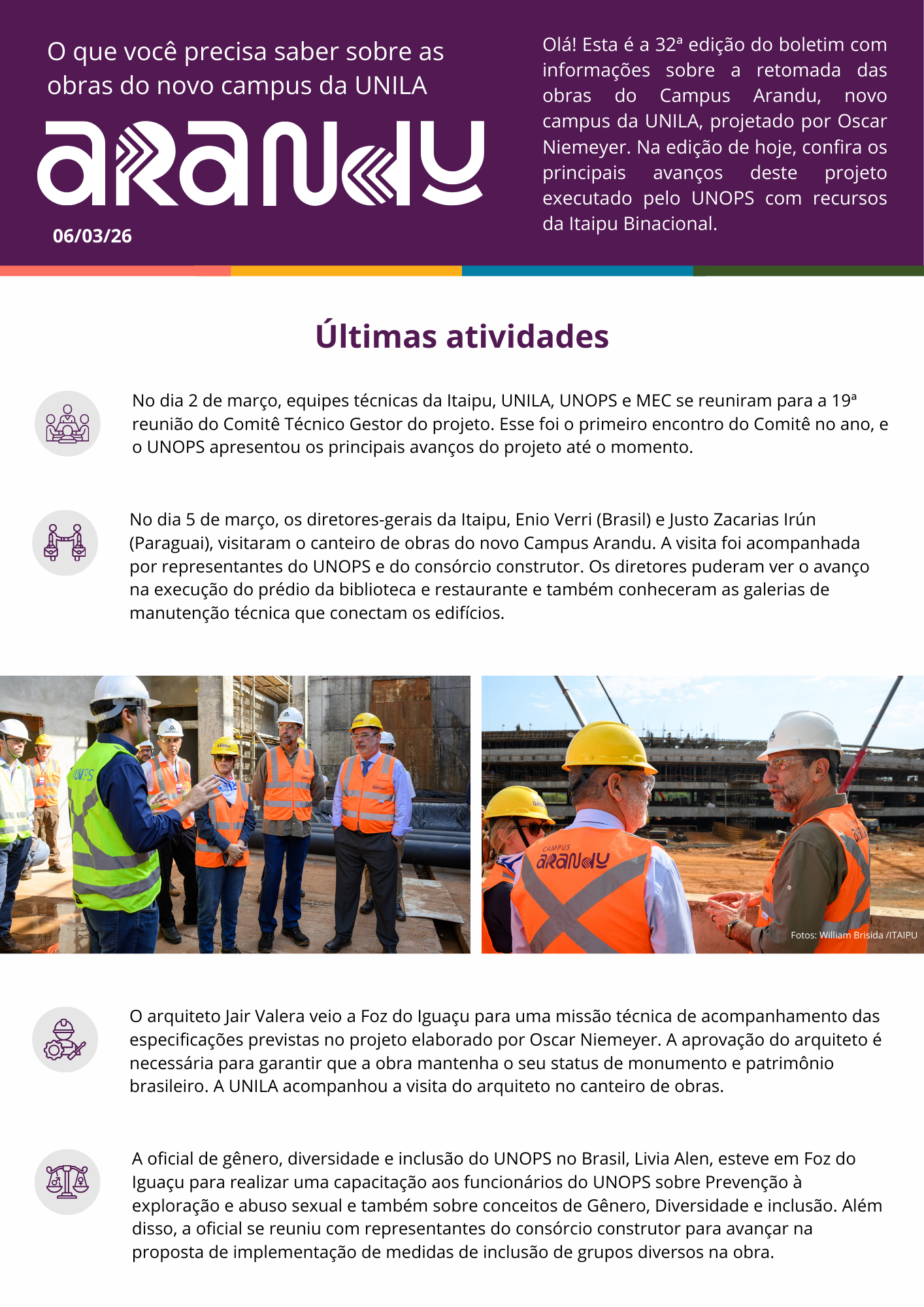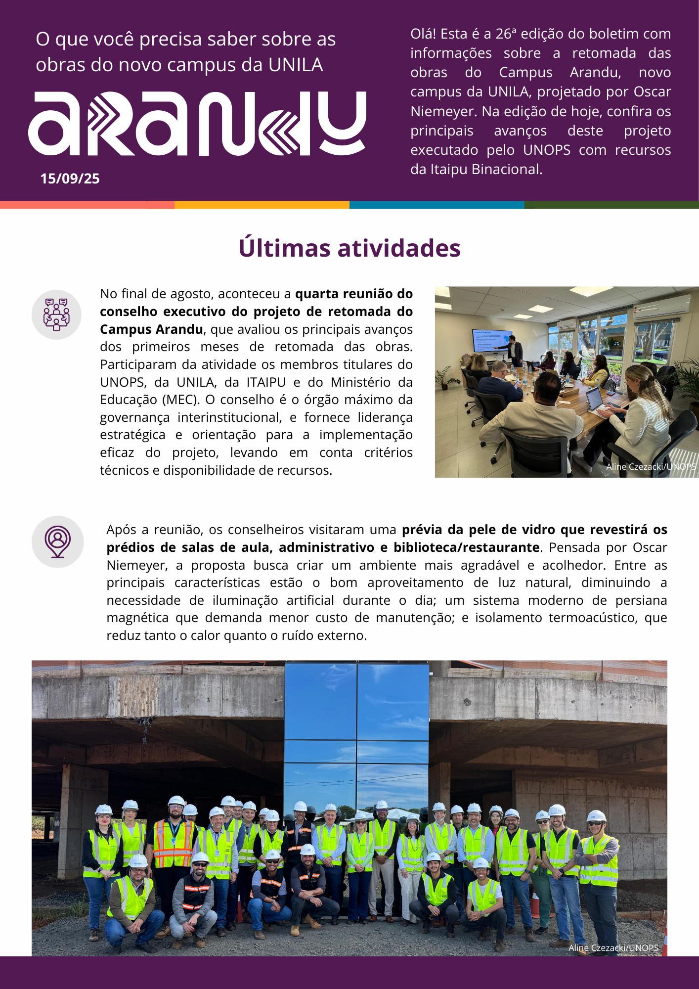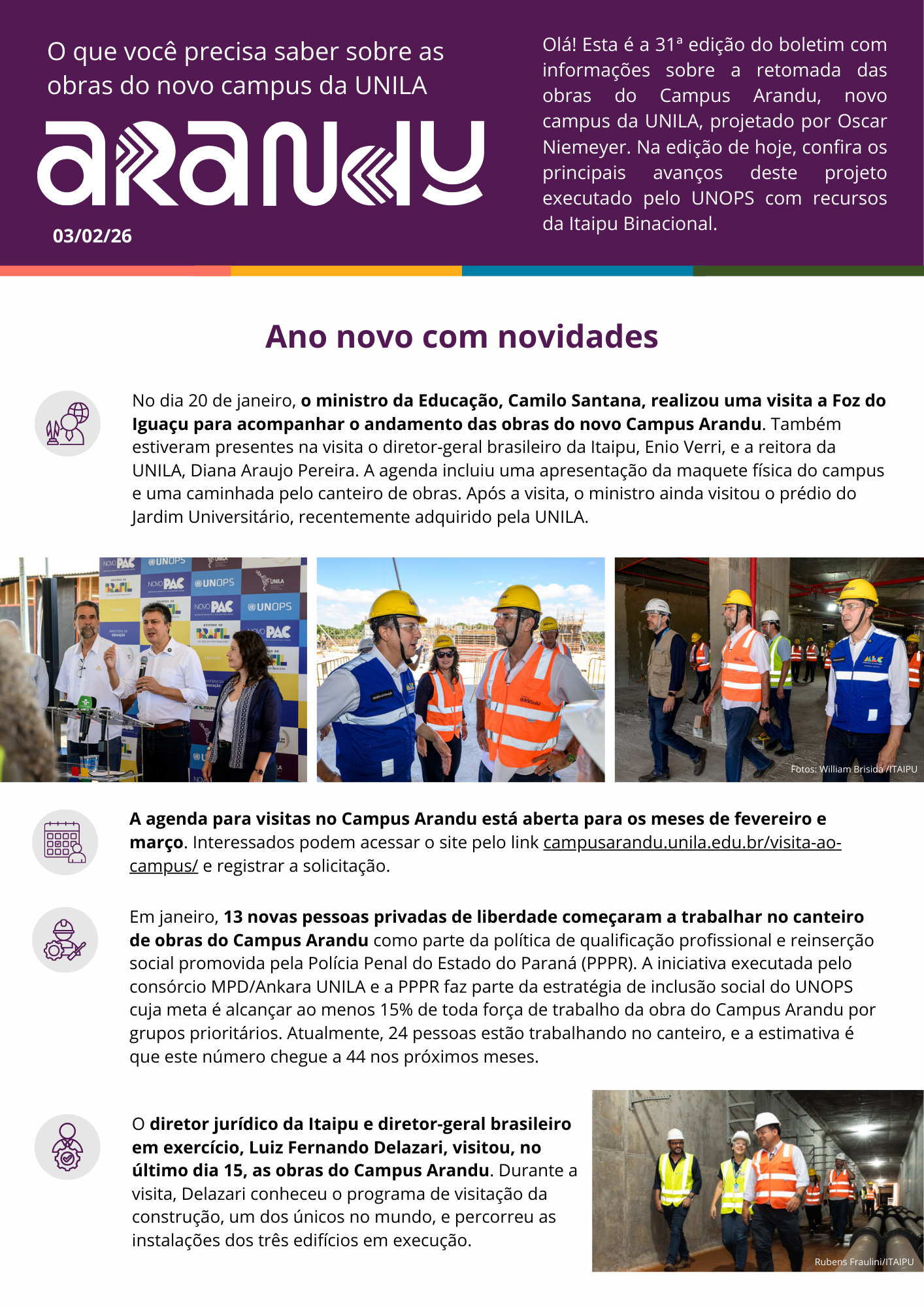 Este é o site do novo Campus Arandu! Aqui você encontra informações, novidades e avanços do projeto de retomada das obras, uma parceria entre UNOPS, ITAIPU e UNILA.